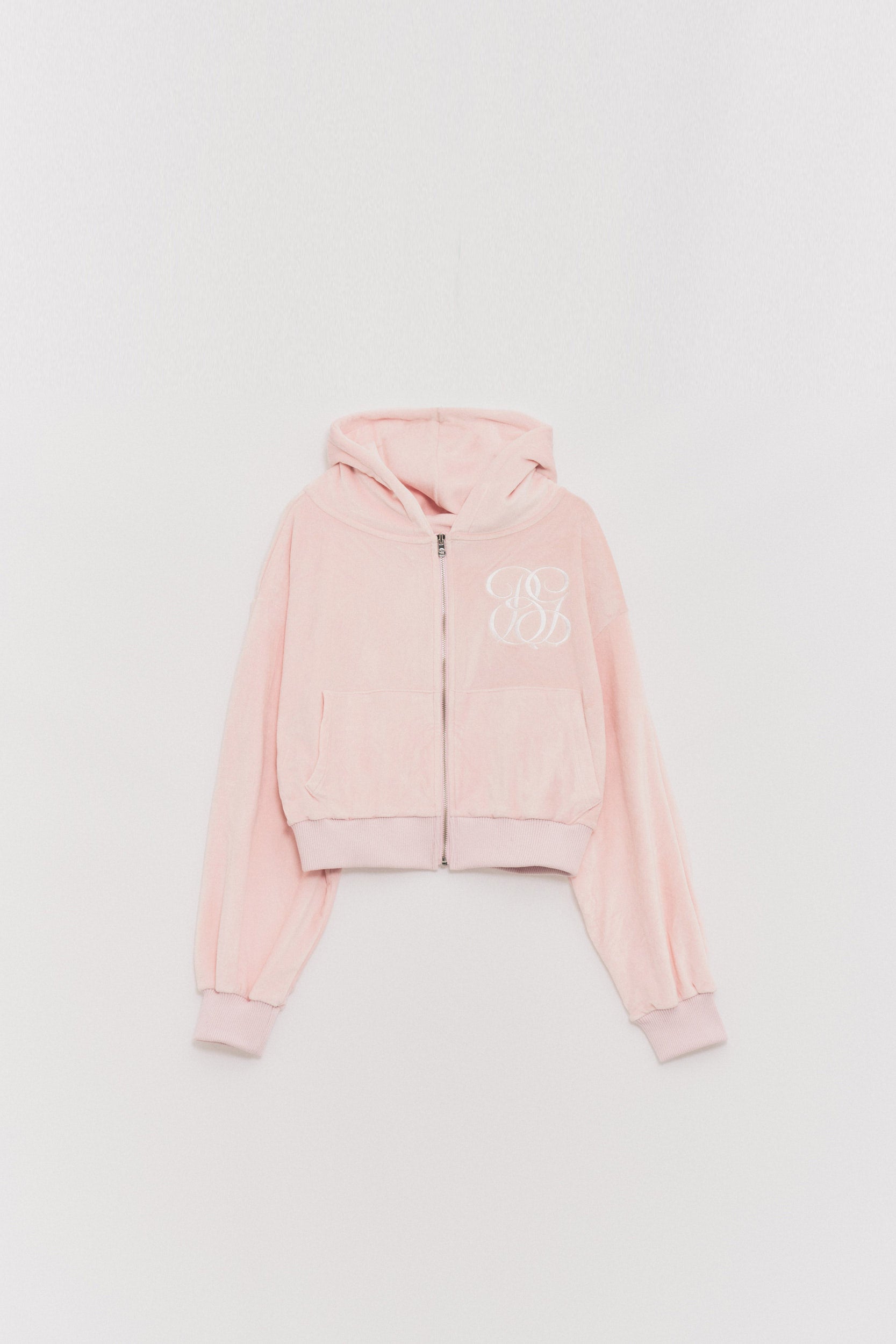 Smooth Velvet Logo Puff-sleeve Hood Jumper